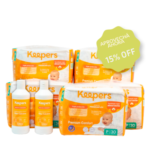 Súper Combo Mensual de 150 pañales Talle P + 2 Óleos Calcáreos Premium